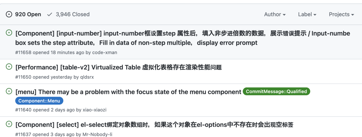 地味にウッとなるのがGitHubのissueなどを漁っていると高頻度で中国語が出てくることです。Elementに中国企業のスポンサーが入っていることが大きいと思います。ページ翻訳すればいいと思うのですが、やっぱりさっと英語で読めるのと比べると少し手間だったり、開発者としても疎外感のようなものを覚えますね。